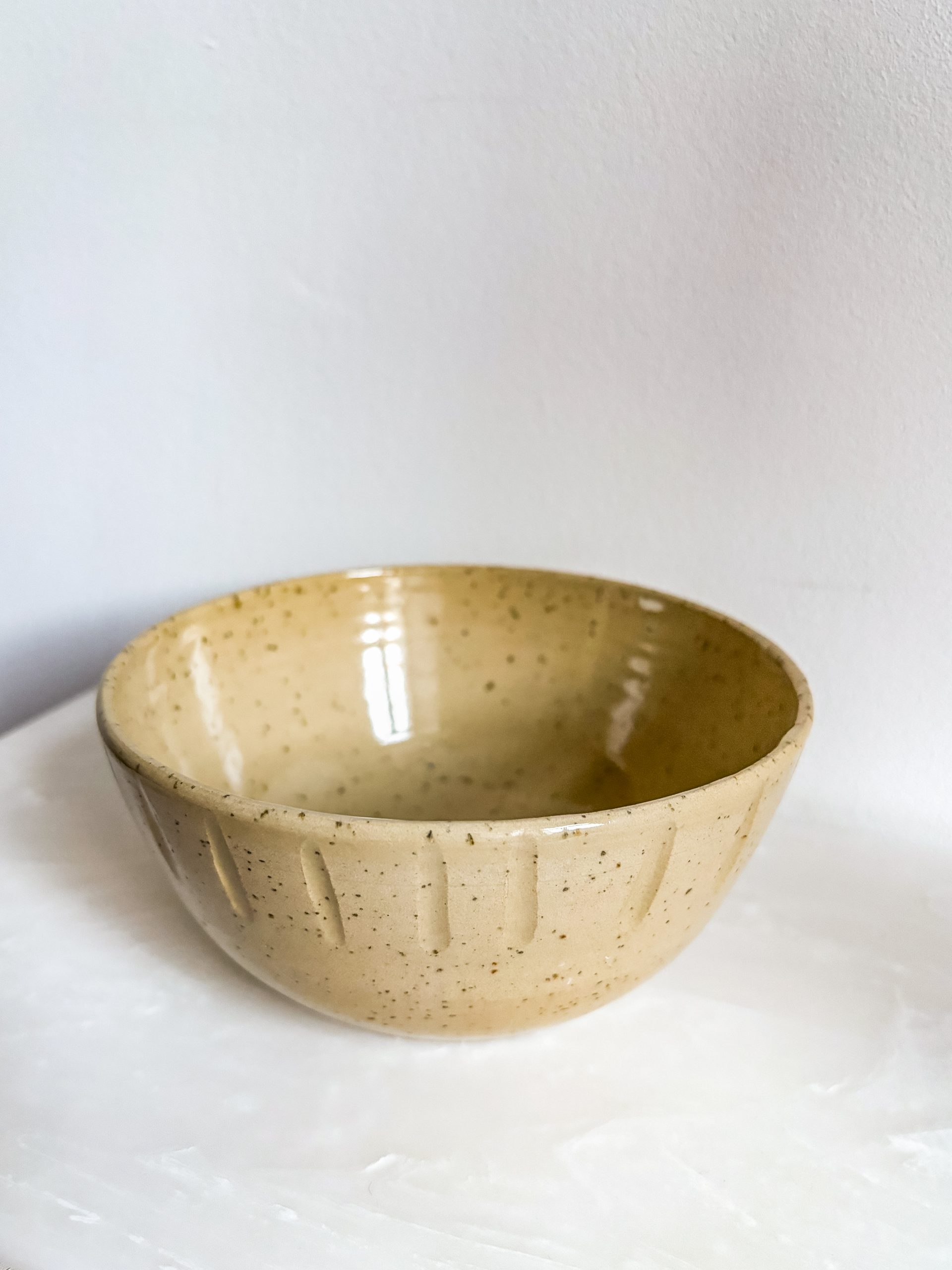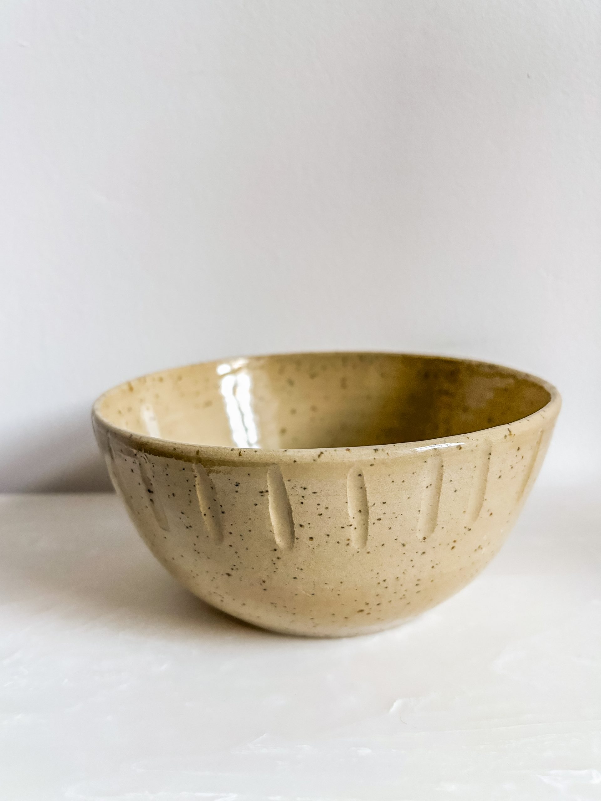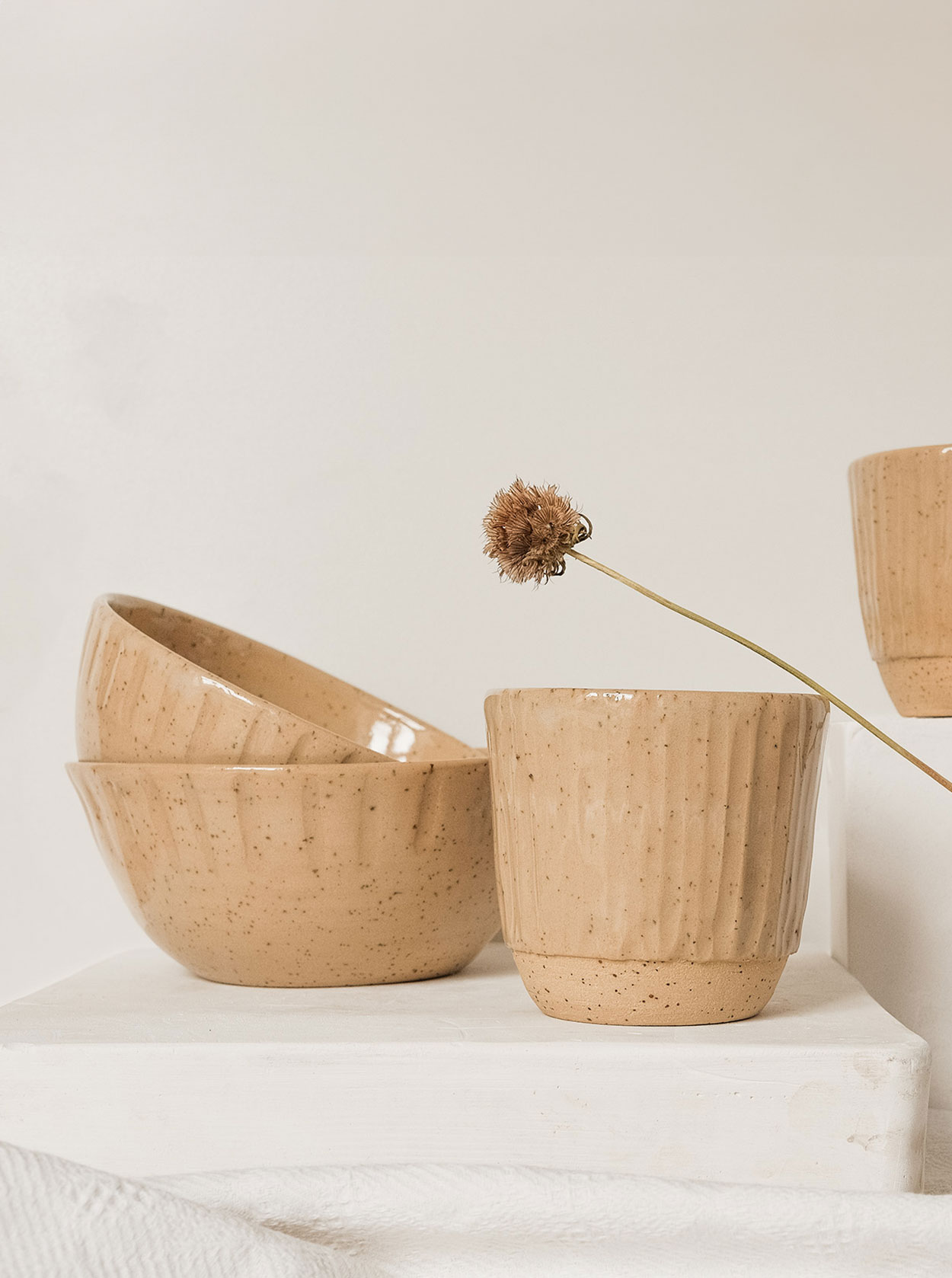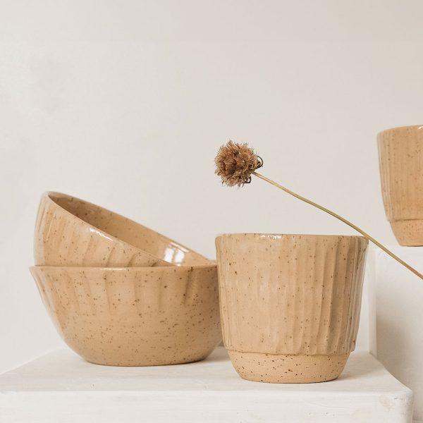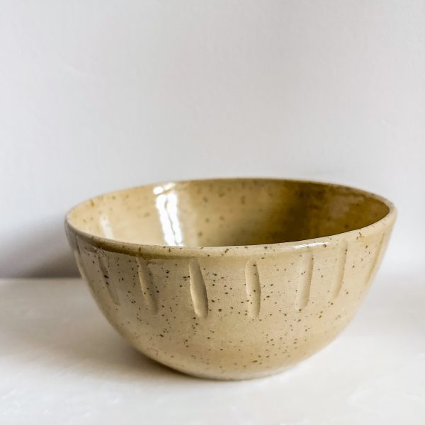 Miska śniadaniowa o prostym kształcie, ze żłobioną fakturą